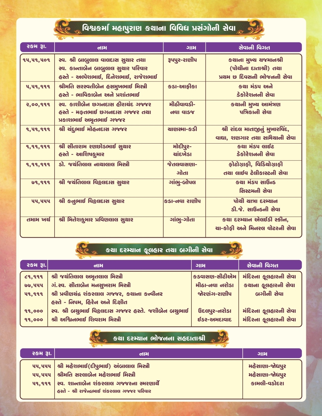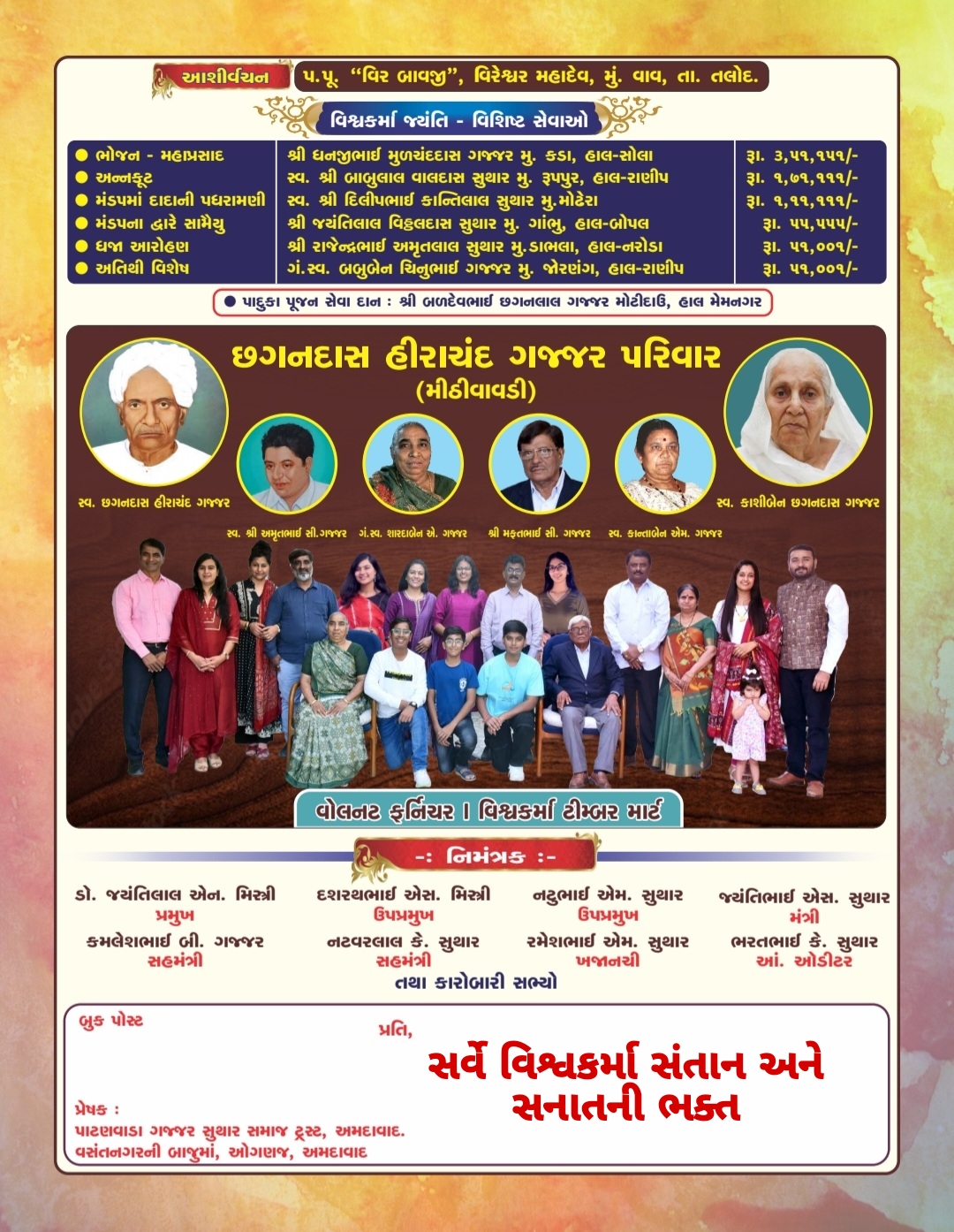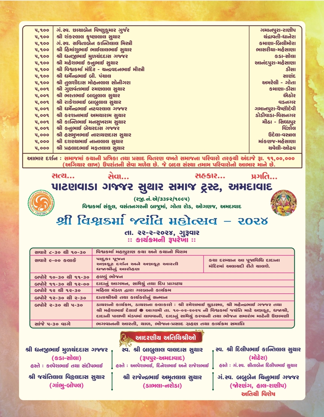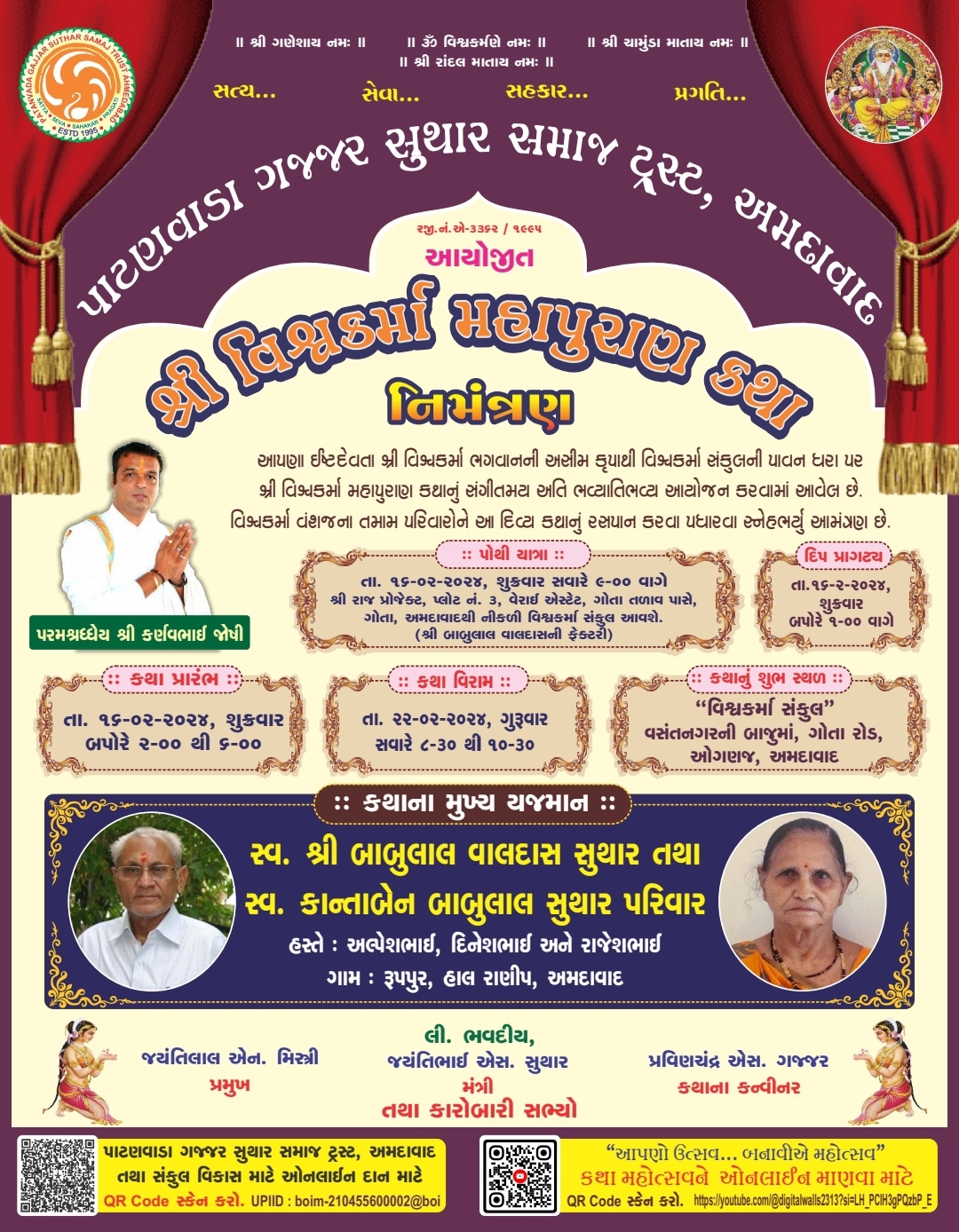 તારીખ ૧૬-૦૨-૨૦૨૪ થી તારીખ ૨૨-૦૨-૨૦૨૪ સુધી વિશ્વકર્મા મહાપુરાણ કથા અને વિશ્વકર્મા જયંતિ મહોત્સવ.
